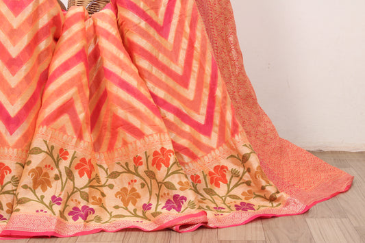 Banarasi Tissue silk zari Brocade saree allover jaal design with skirt