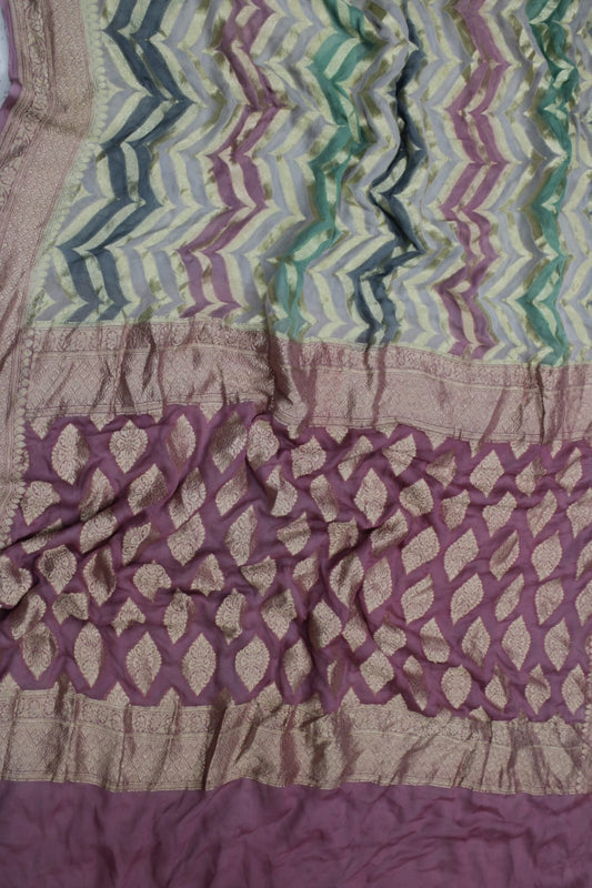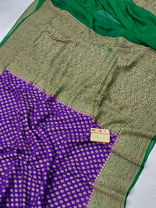 Banarasi Pure Khaddi Georgette silk saree- purple - green