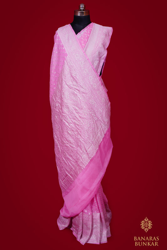 Banarasi Pure Khaddi Georgette silk saree Flower Jaal Pattern