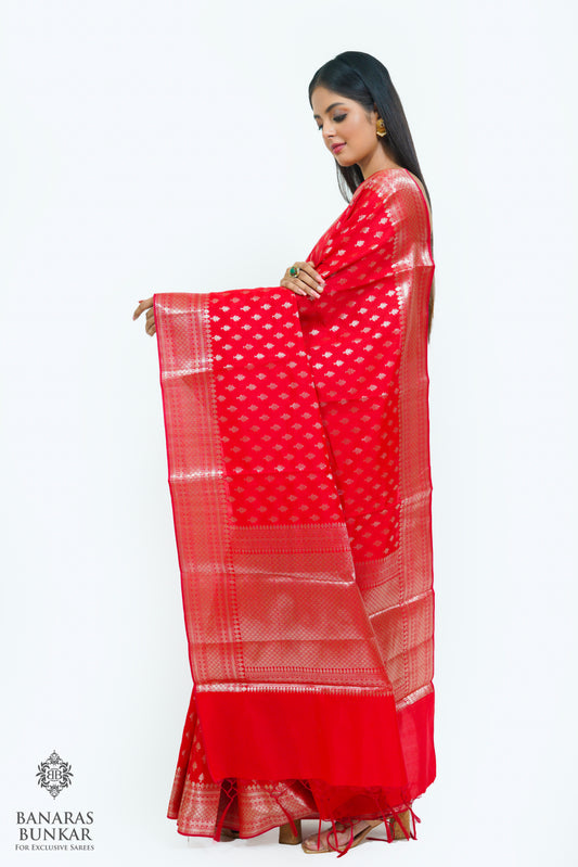 Banarasi Handloom Pure Khaddi Georgette Saree with Allover Buti & Water Zari Designer Pallu