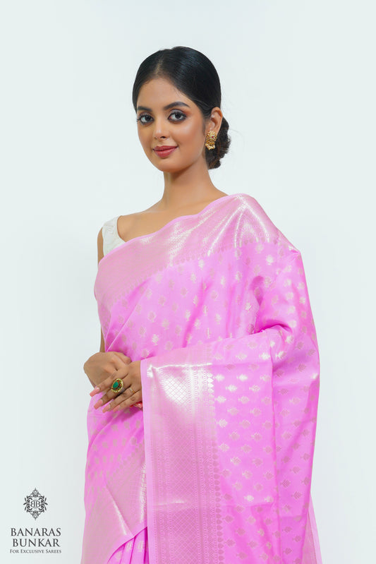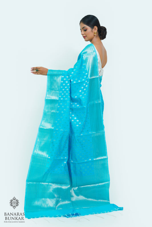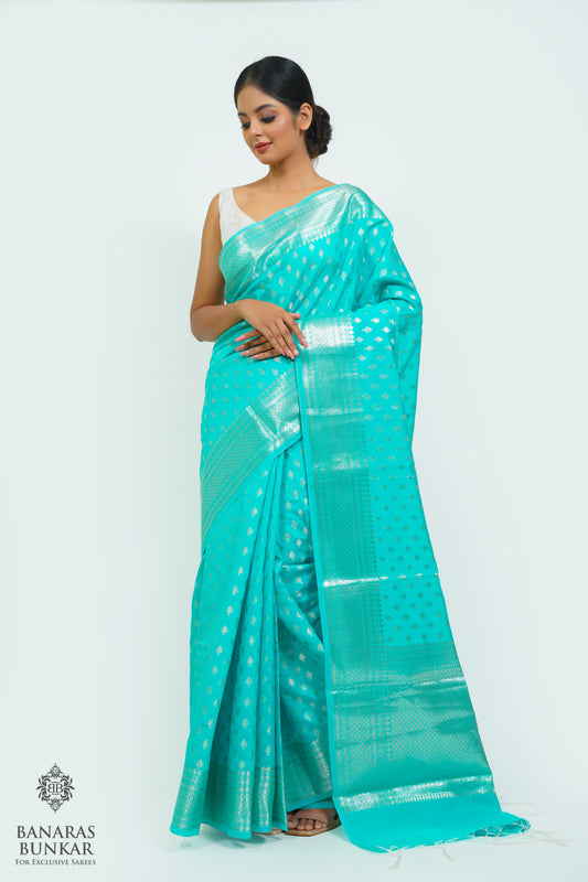 Banarasi semi kataan Tapeta silk saree allover Buti design with equal T