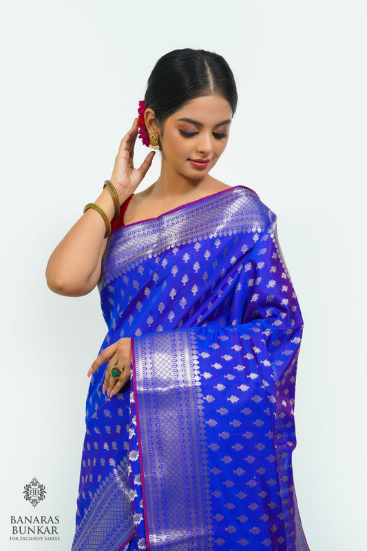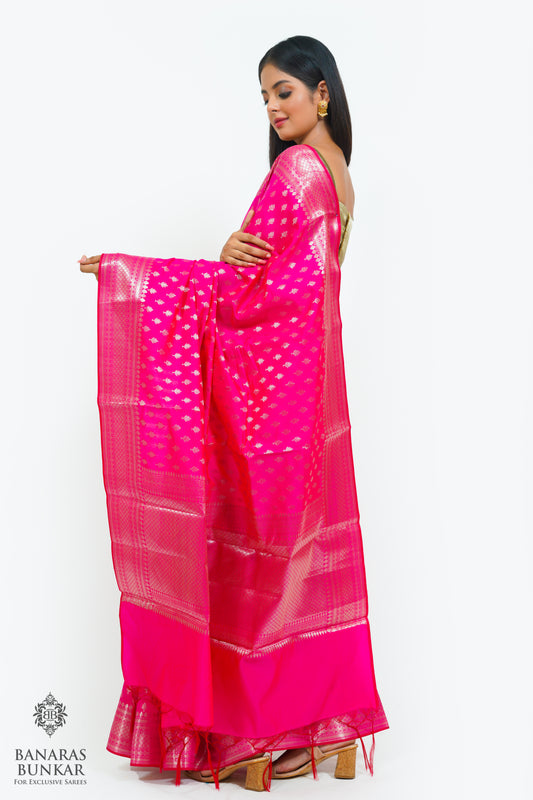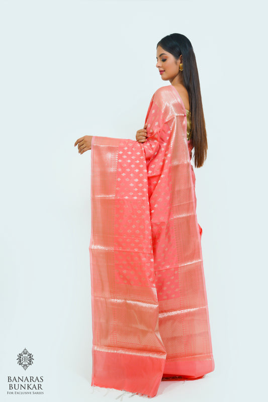 Banarasi handloom semi kataan Tapeta silk saree allover Buti design with equal T