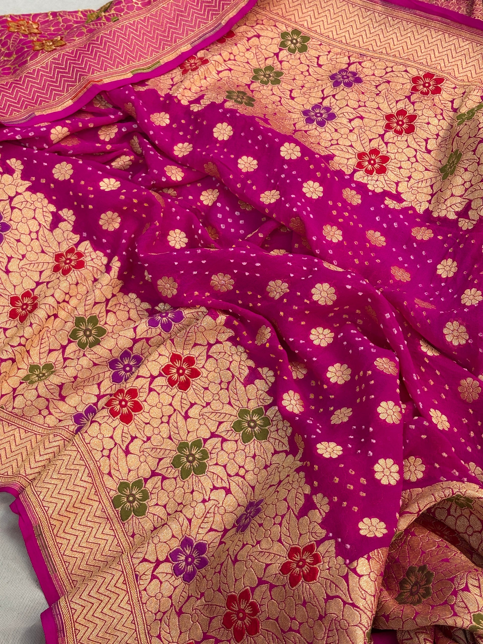 pure georgette banarasi bandhani sareebandhej georgette saree