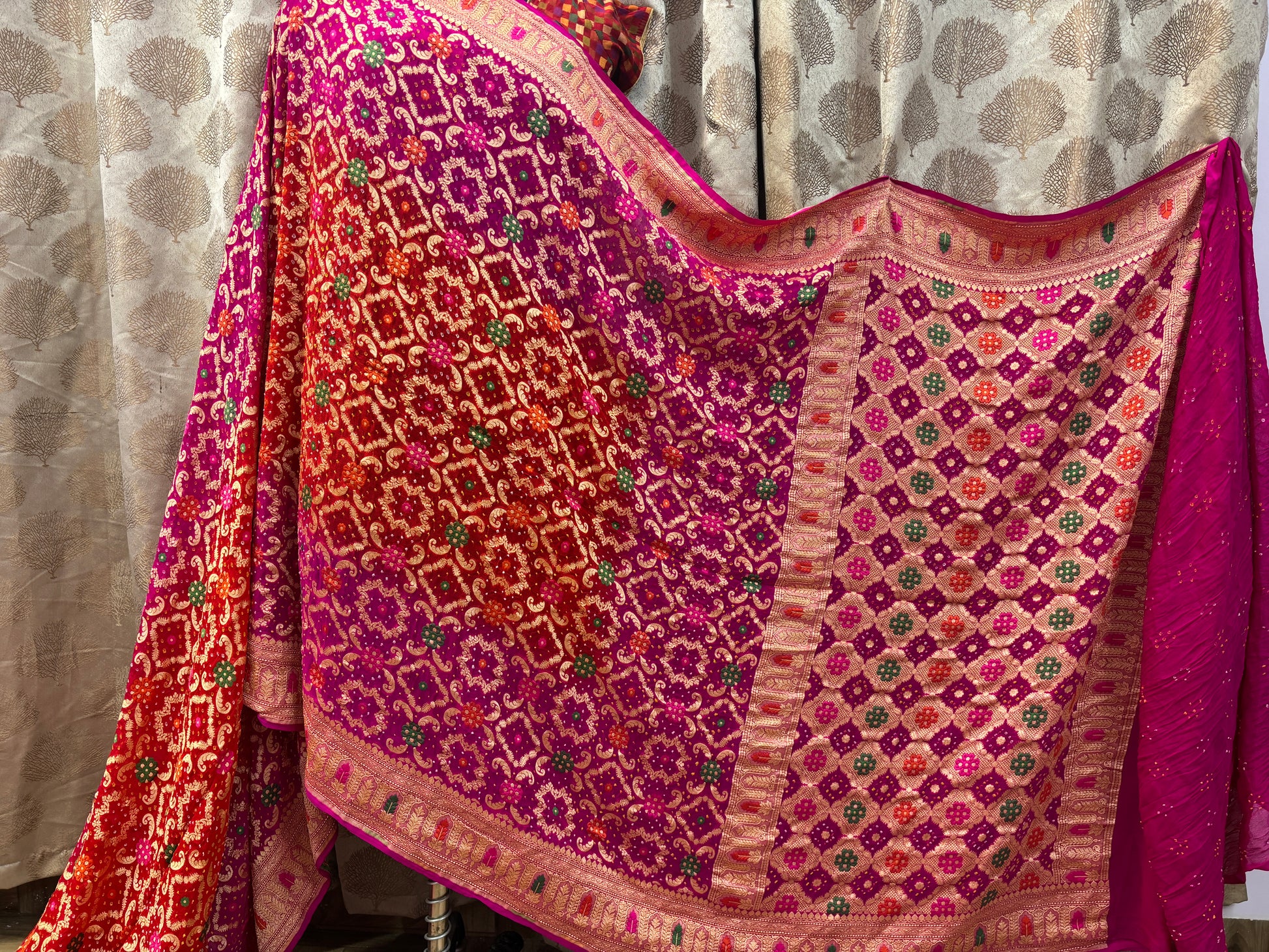 bandhej gharchola banarasi silk saree