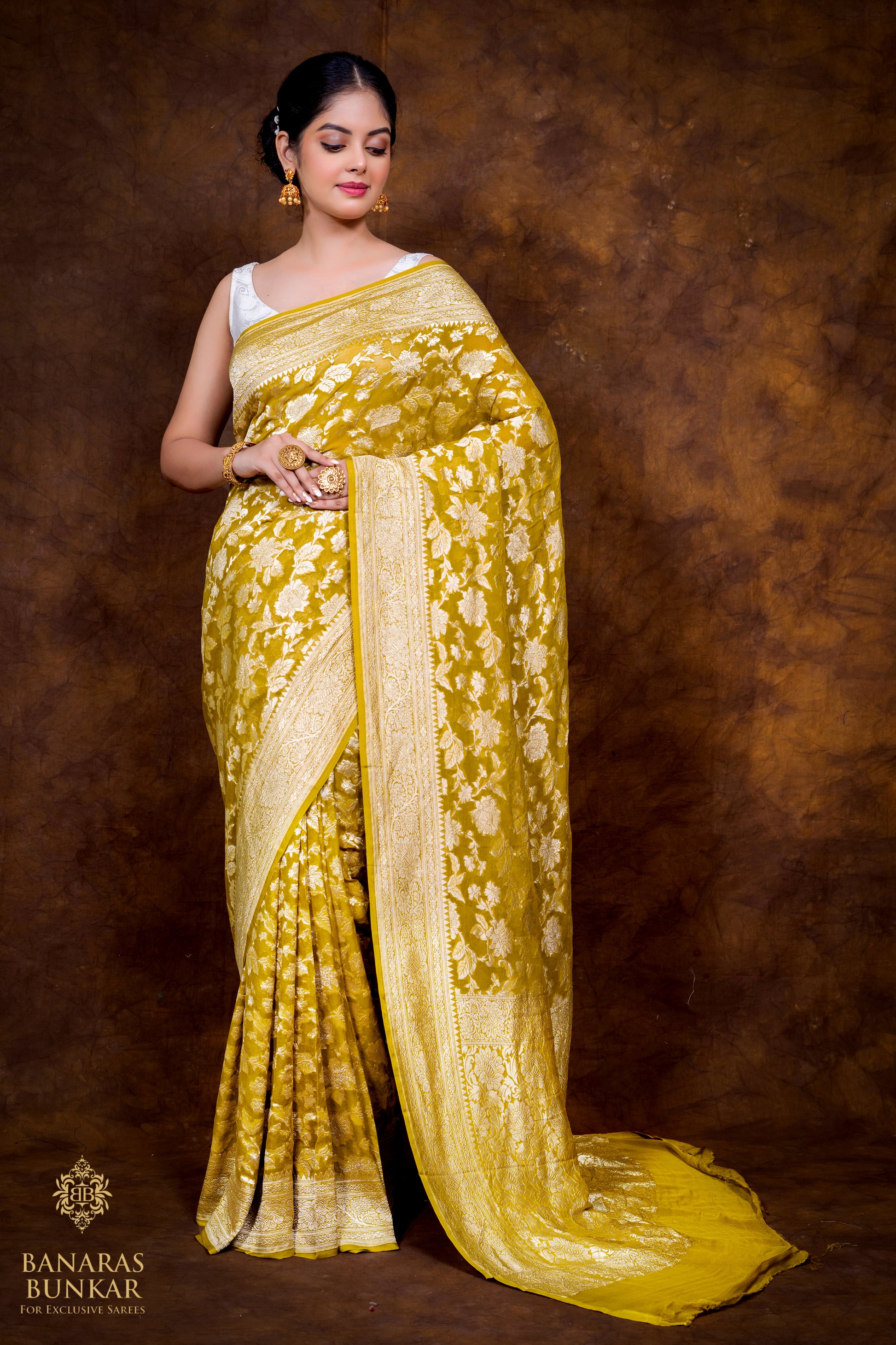 Banarasi Pure Khaddi Georgette silk saree Flower Jaal Pattern