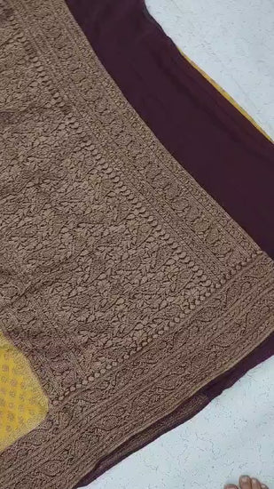 Banarasi Pure Khaddi Georgette silk saree- yellow - coffee