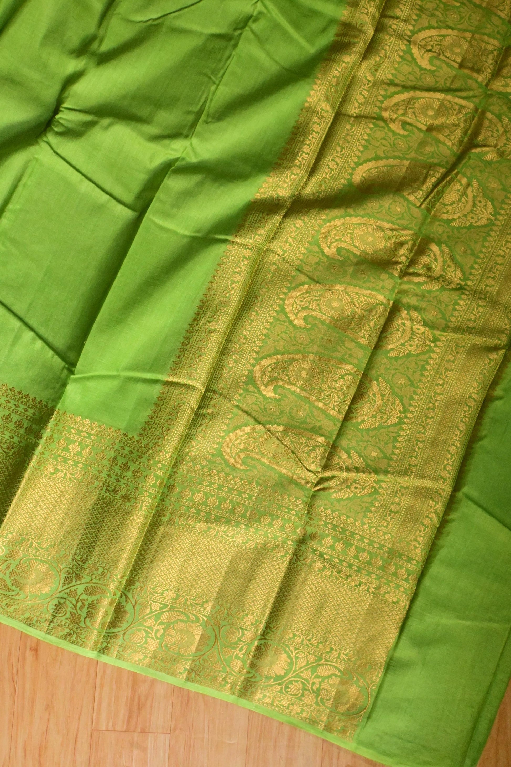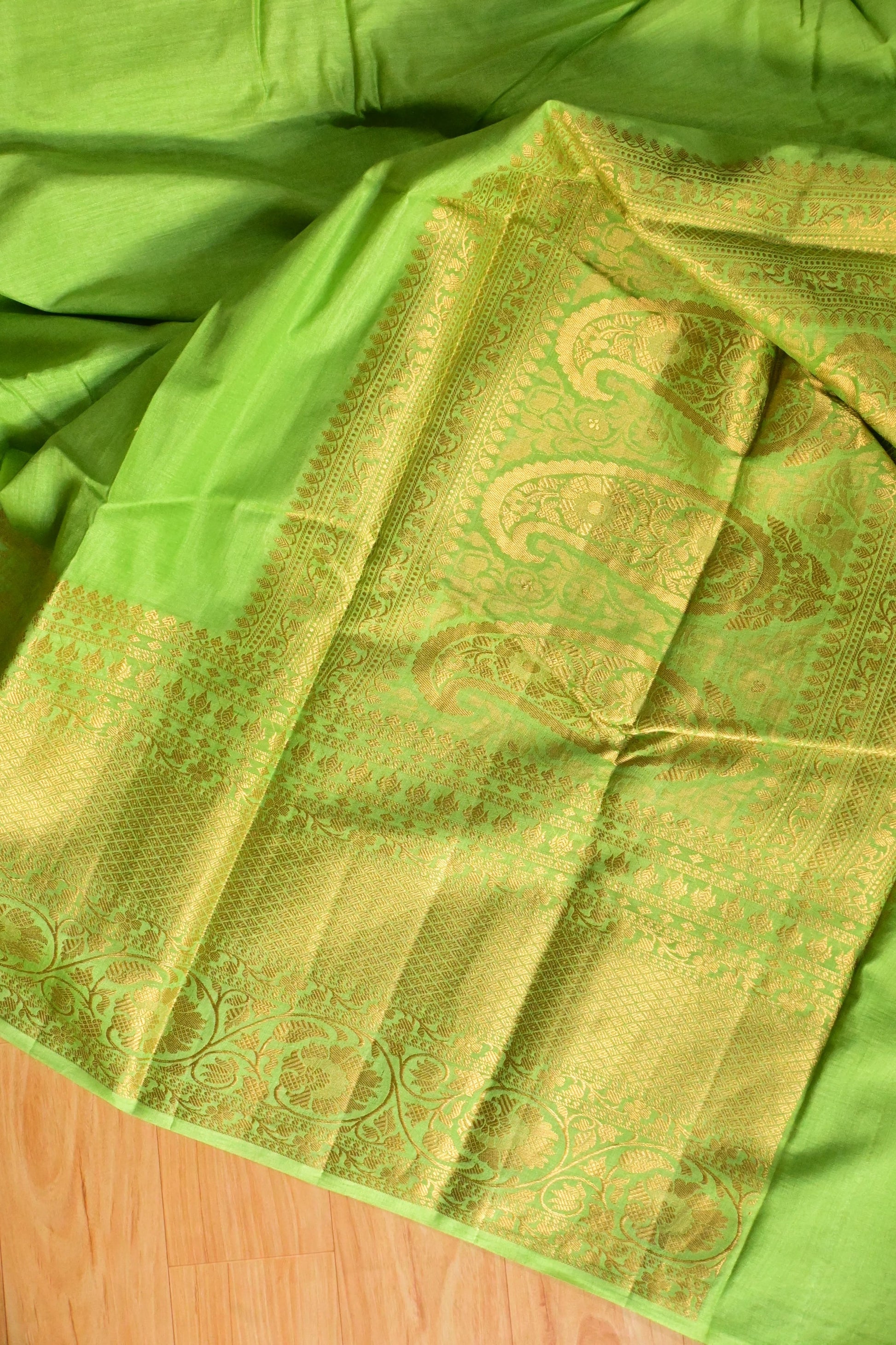 Banarasi Pure Moonga silk saree with skirt- Parrot Green